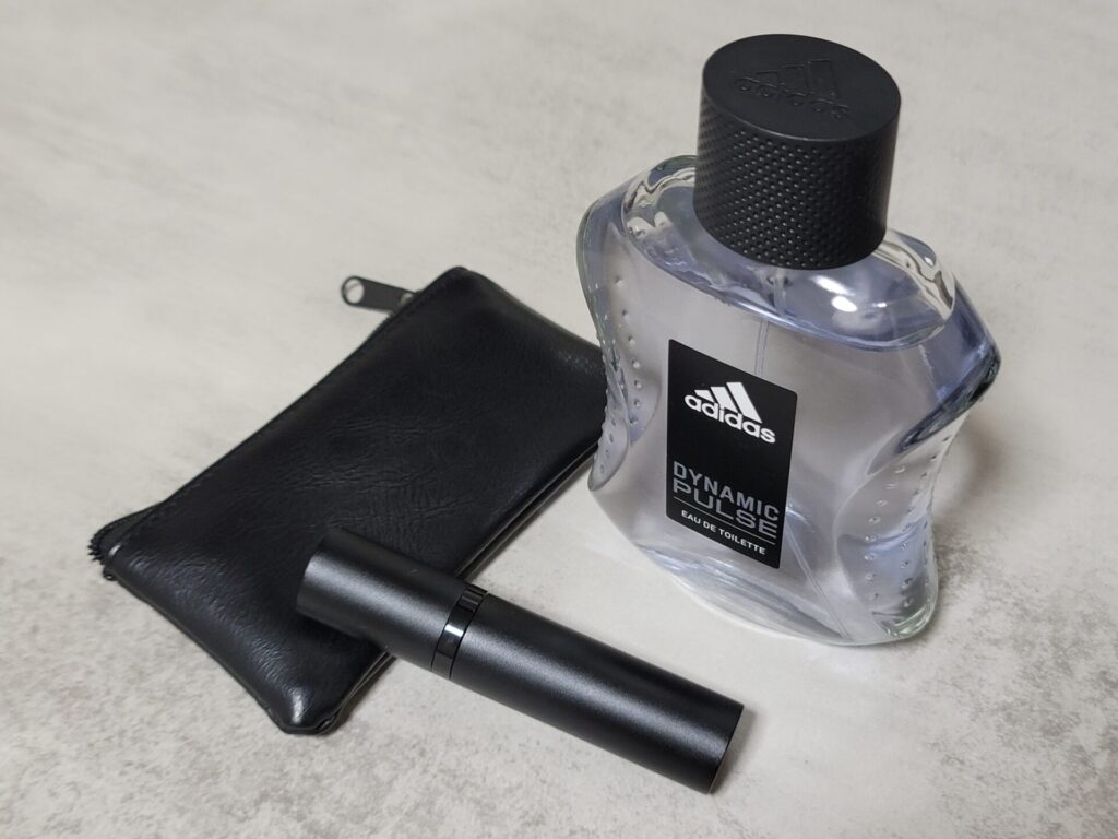 アトマイザーに入れて、あとはダイソーかどこかで、これに合うサイズの入れ物(写真では黒色の皮っぽい入れ物)に入れたら、あら、おしゃれ!いやまあ実際そんなにおしゃれでもないと思うのですが、自分みたいな地味な人間にはこれくらいがちょうどええのです。匂いって割りとテンションに直結するので、若い頃から興味を持っておいてもよかったかなあ、と今更ながらに思ったりする日々です。
