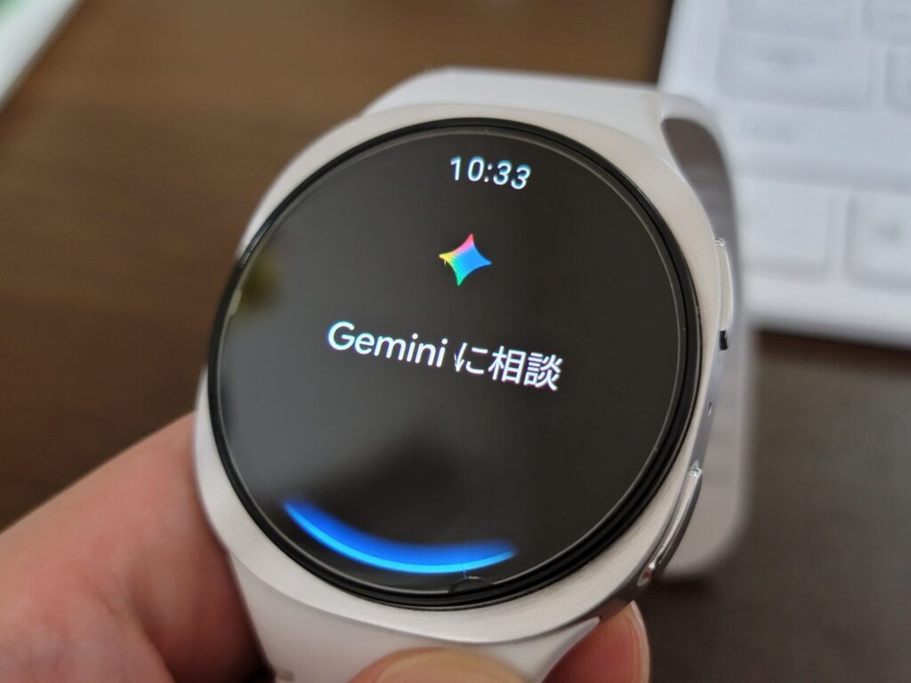 今回の目玉とも言えるのが、AIアシスタント「Gemini」の搭載です。これが想像以上に便利でした。Galaxy Watch8 40mmは右上のボタンを長押しするだけですぐにGeminiを呼び出すことができます。
